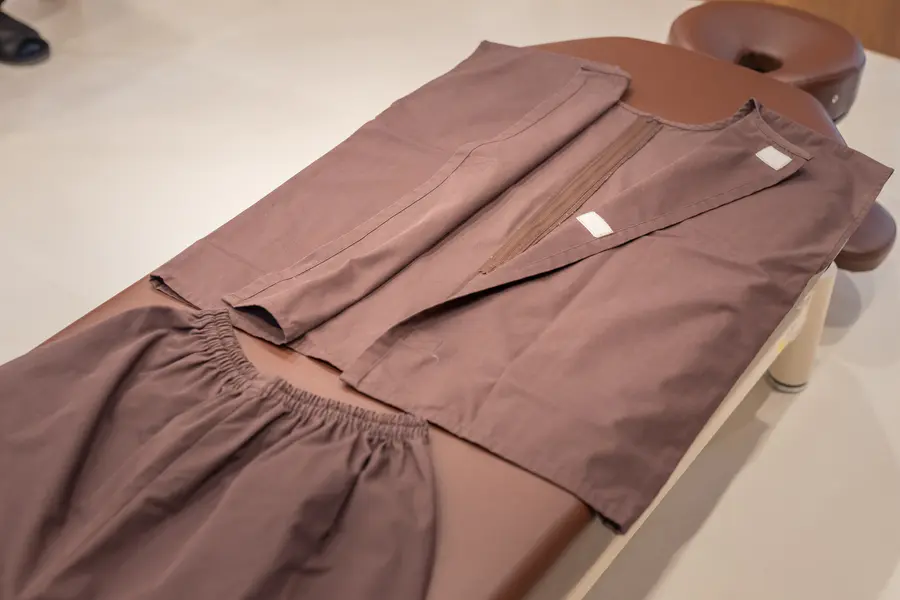 お洋服のままだと、鍼や灸を出来る場所が限られてしまいますので、専用の施術着へのお着替えをお願いします。長い髪で首や肩を施術する際は、髪を結んで、ヘアクリップで止めて頂きます。当院で用意していますので、お使いください。