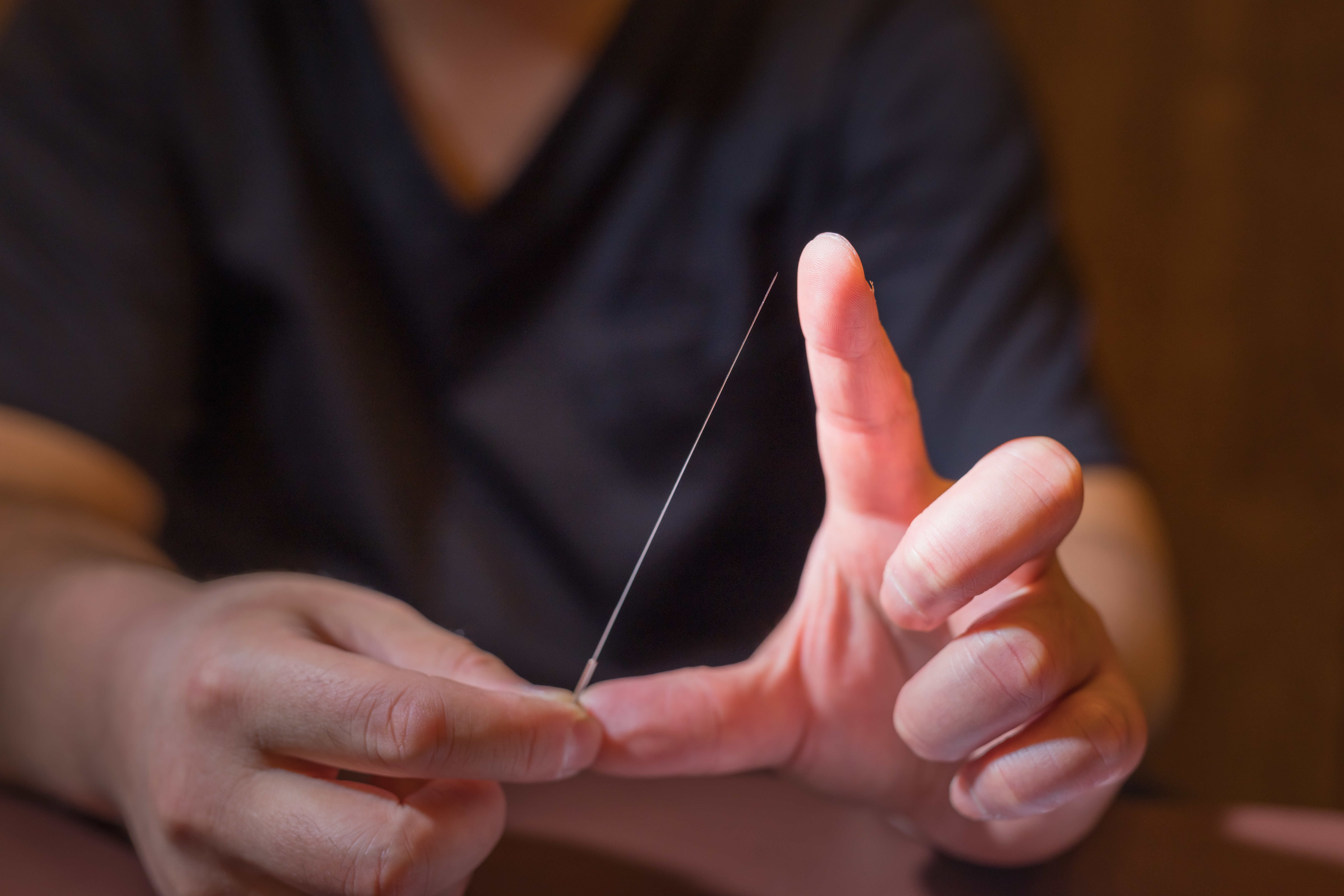 慢性痛や痛みが強い方の原因の多くは深部の筋肉が緊張して、神経や血管を圧迫して痛みを引き起こしています。そういった方に最適な方法である、長い鍼で深部の筋肉を緩めます。