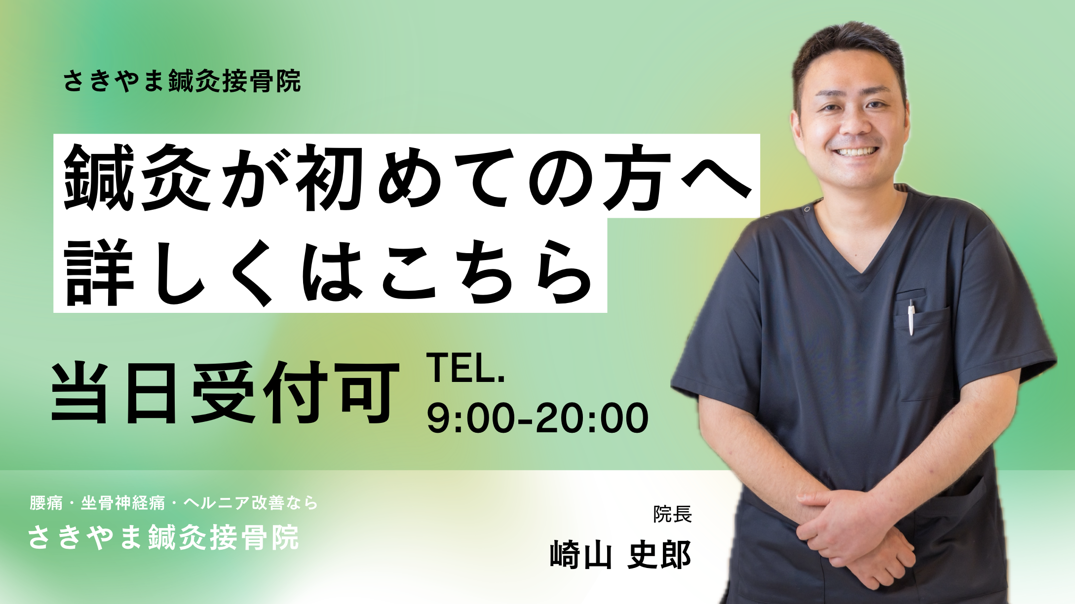 電話をかけて頂きましたら「さきやま鍼灸接骨院、院長さきやまです」と電話をでます。予約希望日時をおっしゃっていただきましたら、お取りします。その際、聞いておきたい事や心配な事ありましたらなんでも言ってください。お答えさせて頂きます。 -